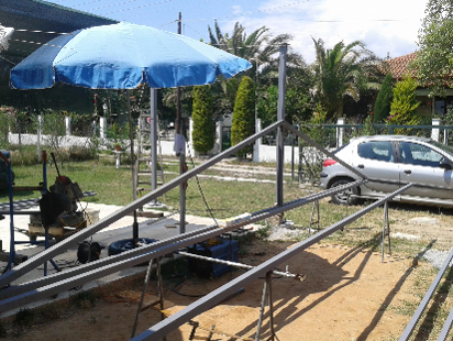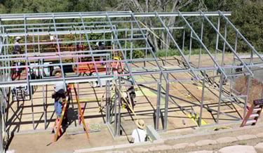 Field fabrication of metal trusses for residential use.